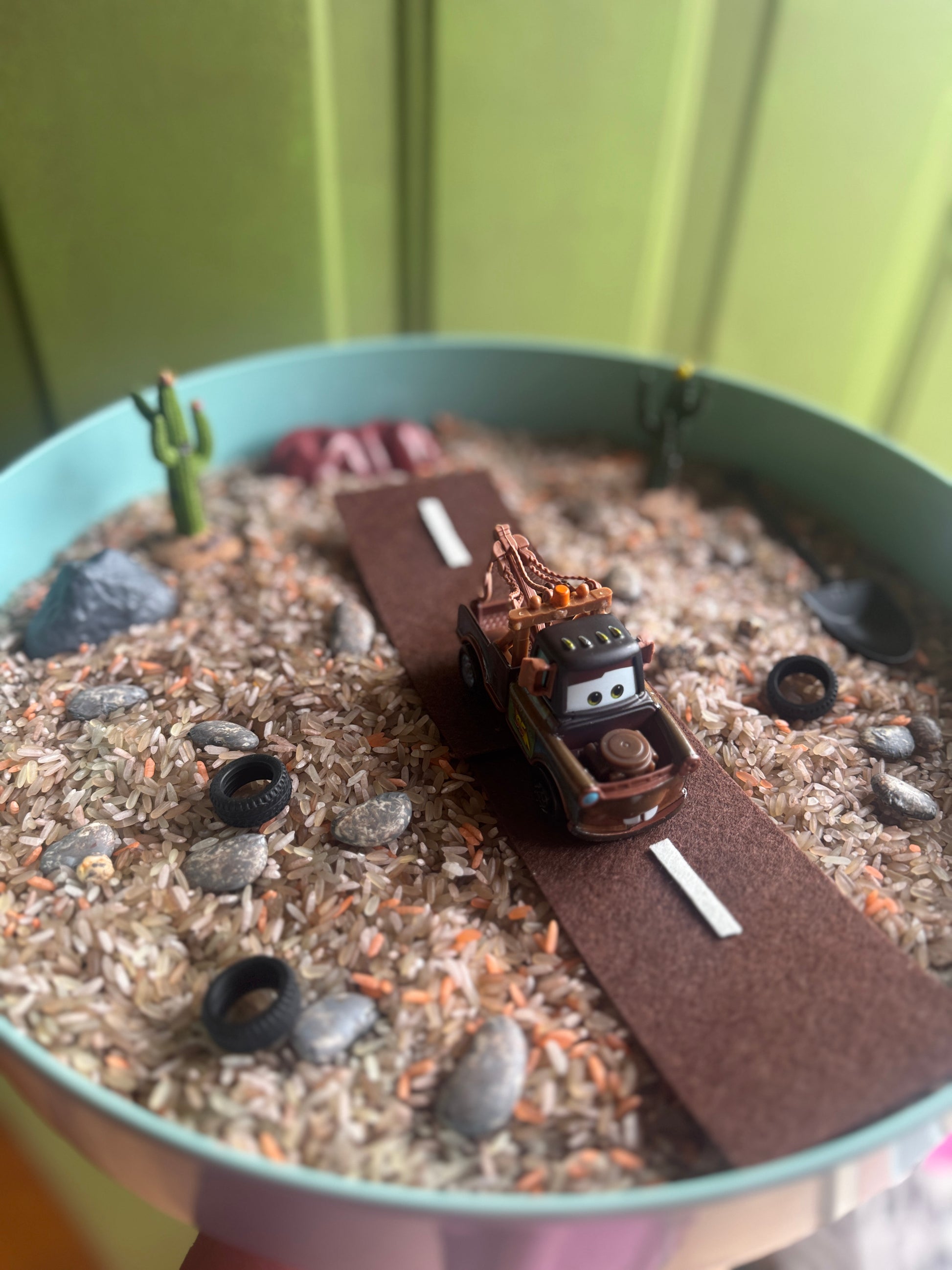 Take a road trip through the desert with our Radiator Springs sensory play kit, inspired by dusty highways, tow trucks and Route 66 adventures. Little explorers can pour, scoop and drive their way through a desert landscape full of texture and imagination.